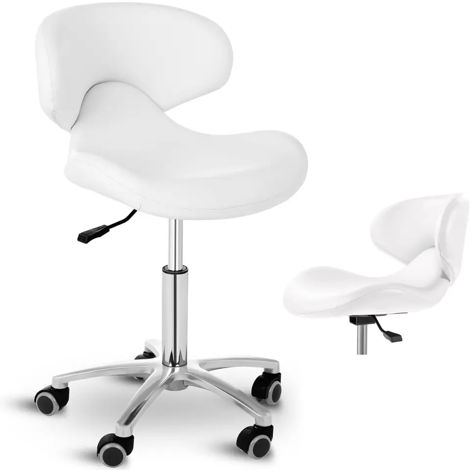 Kod producenta: 10040277 Krzesło kosmetyczne marki PHYSA idealnie nadaje się do wystroju każdego salonu fryzjerskiego lub barberskiego, centrum kosmetycznego, studia tatuażu oraz wielu innych obiektów branży kosmetycznej. Sprawdzi się również w użytku domowym. Model ANDIA WHITE cechuje niezwykłą wygodą poprzez zastosowanie wyprofilowanego siedziska o grubości 5 cm wypełnionego pianką, dodatkowo pokryte obiciem PVC, które nie pochłania kurzu ani płynów. Krzesło obraca się o 360deg;C i wytrzyma obciążenie do 150 kg. Konstrukcja wykonana z materiałów najwyższej jakości. Podstawa ze stali zapewnia stabilność sprzętu, dodatkowo gumowe kółka zapewniają łatwe i ciche przemieszczanie bez porysowania podłogi. Prostota użytkowania dzięki dźwigni działającej na zasadzie pompy gazowej, sprawna regulacja wysokości do 57 cm. Cechy produktu: