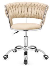 TRECCIA OFFICE BEIGE VELVET - Nowoczesne krzesło obrotowe, tapicerowane welurem w kolorze jasnym beżowym, z unikatowym plecionym wzorem na oparciu.