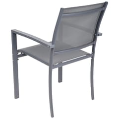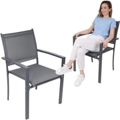 - trwały materiał Textilene – odporny na wilgoć, promienie UV i łatwy w czyszczeniukomfortowe podłokietniki – zapewniają wygodę podczas wypoczynkusolidna konstrukcja – stabilna i wytrzymała, idealna do użytku zewnętrznegokomplet 2 sztuk – idealny zestaw na taras, balkon lub do ogrodunowoczesny i estetyczny design – pasuje do każdej przestrzeniobciążenie do 120 kg – bezpieczne i trwałe użytkowanie