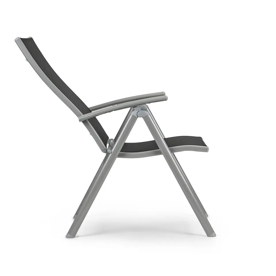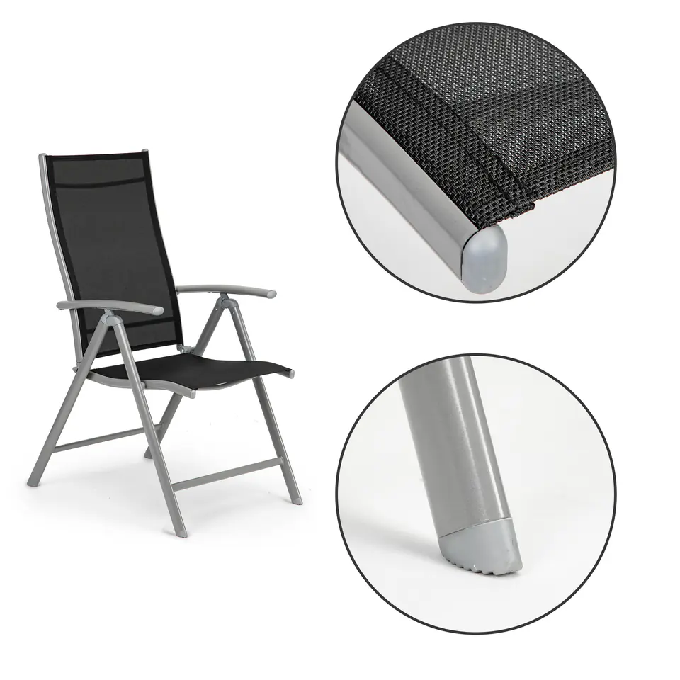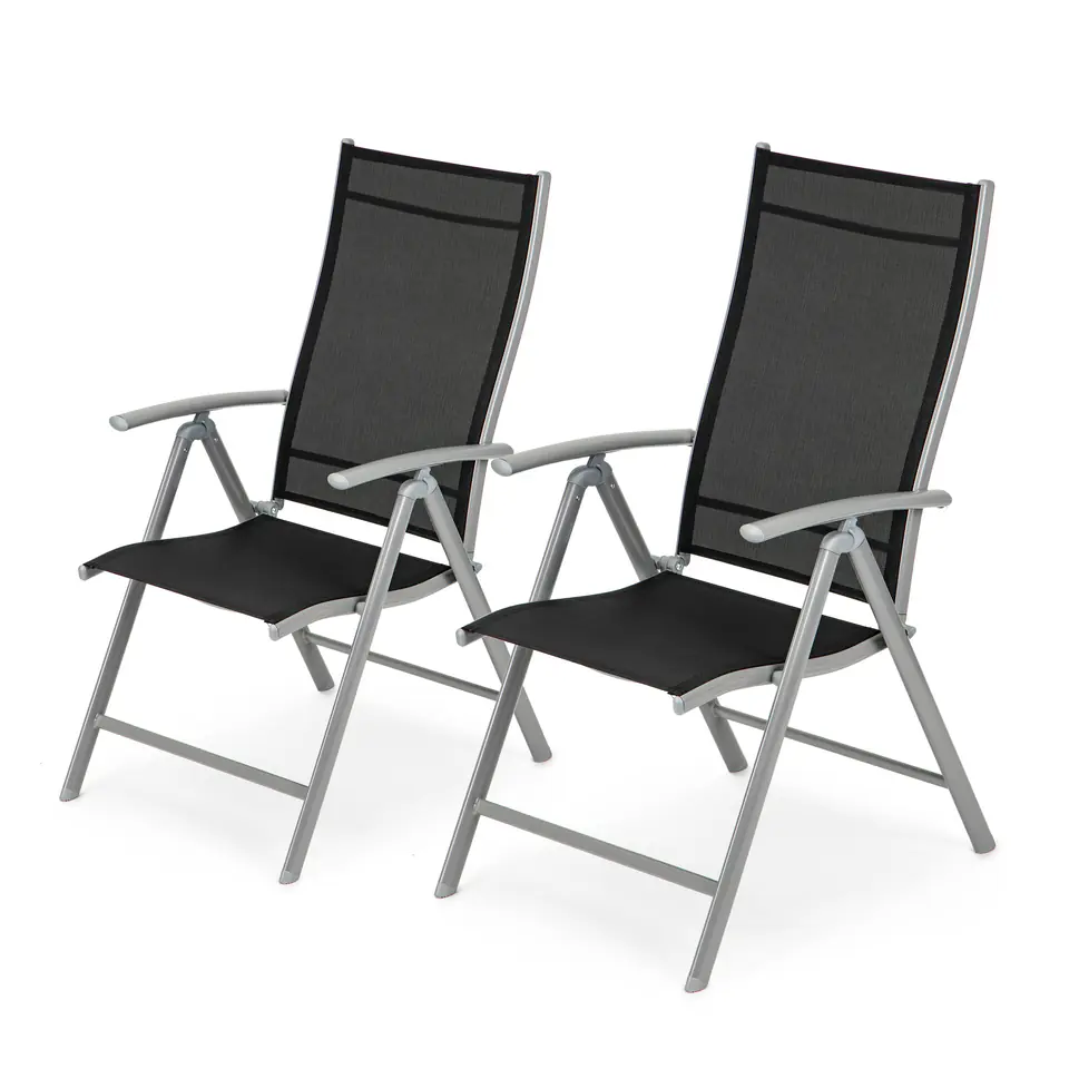 Składane krzesła z siedmio pozycyjną regulacją oparcia, sprawią, że będziesz mógł wygodnie odpocząć w ogrodzie, na balkonie, czy tarasie. Stalowy stelaż gwarantuje stabilność i długie użytkowanie, dzięki materiałom wysokiej jakości nie wymagają żadnej konserwacji.