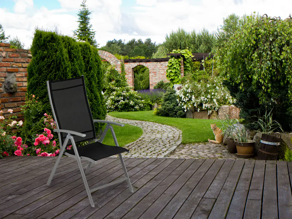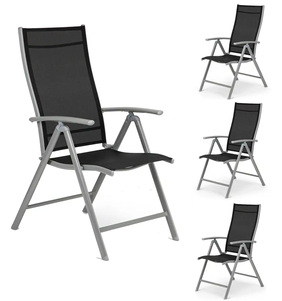 Składane krzesła z siedmio-pozycyjną regulacją oparcia, sprawią, że będziesz mógł wygodnie odpocząć w ogrodzie, na balkonie, czy tarasie. Stalowy stelaż gwarantuje stabilność i długie użytkowanie, dzięki materiałom wysokiej jakości nie wymagają żadnej konserwacji.
