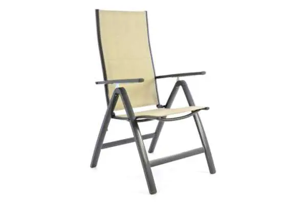 Krzesło ogrodowe z regulowanym oparciem beżowe Stylowe i wygodne krzesło ogrodowe zapewni Tobie komfort podczas relaksu w ogrodzie lub na tarasie. Wytrzymała, aluminiowa konstrukcja zapewnia nośność krzesła do 110 kilogramów. Produkt został wykonany z dbałością o detale, więc posłuży Tobie na więcej niż jeden sezon ogrodniczy. Lekki, wytrzymały oraz wygodny w użyciu Wymiary: 110x59x63 cm Wymiary krzesła złożonego: 93x59x20 cm Wymiary siedziska: 43x43 cm Wymiary oparcia: 70x47 cm Wysokość siedziska: 45cm Maksymalny udźwig 110 kg 7 stopniowa regulacja oparcia Stelaż wykonany z aluminium, malowany proszkowo Kolor krzesła: beżowy
