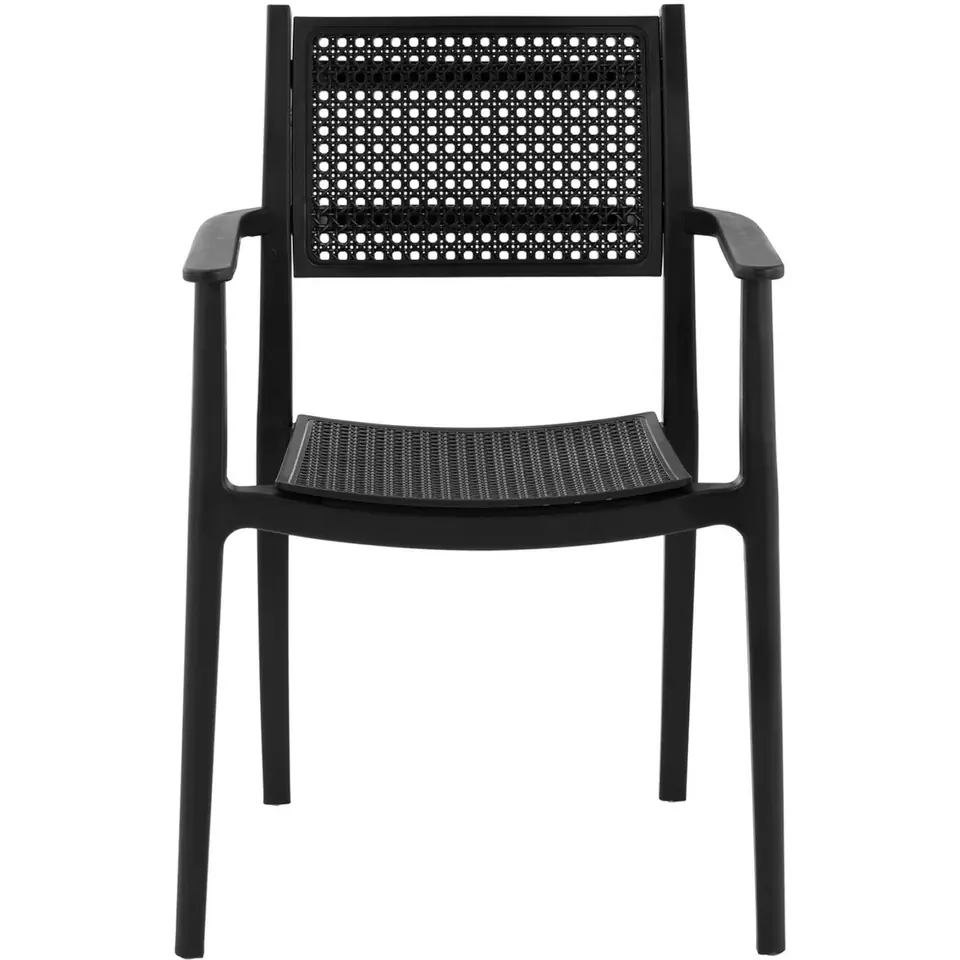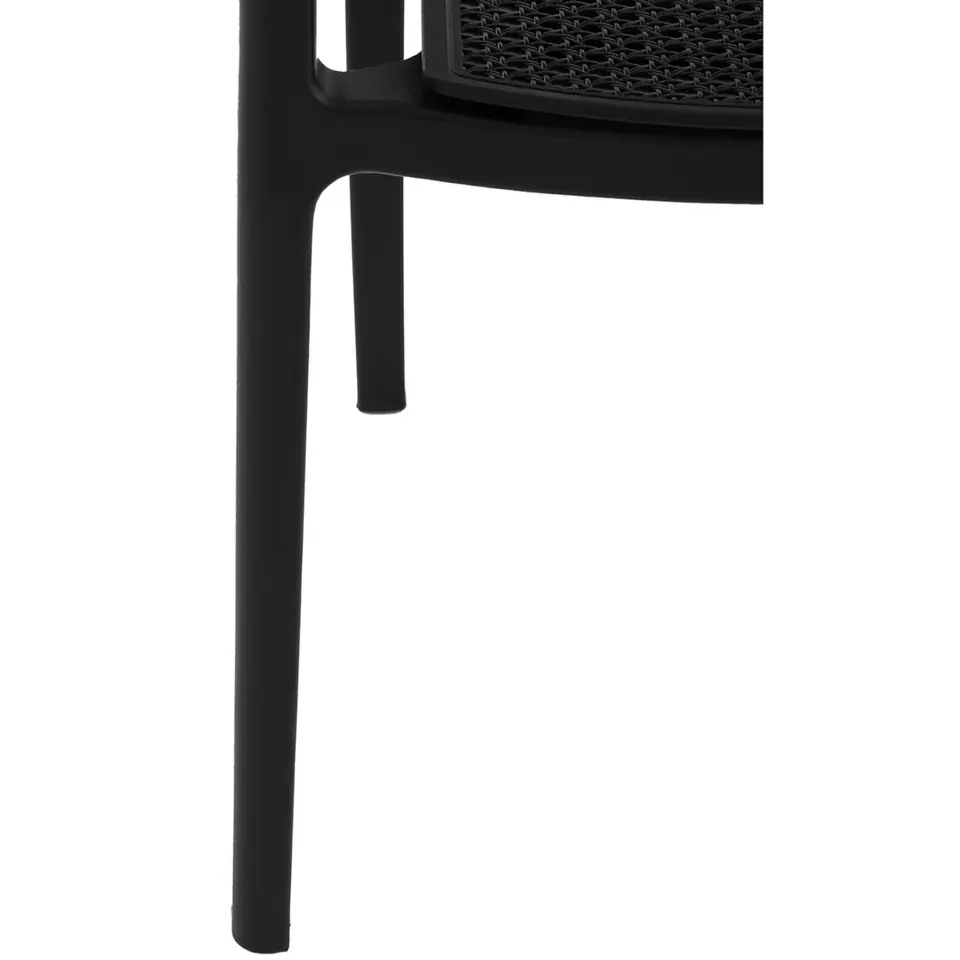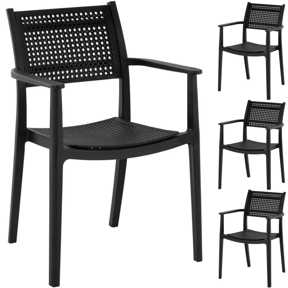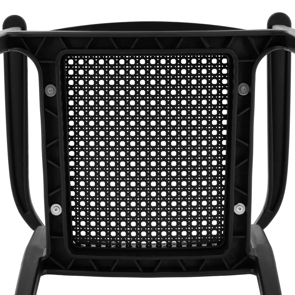 Krzesła wykonane zostały z wytrzymałego tworzywa sztucznego. Siedziska są bardzo wygodne. Czarne ażurowe oparcie zapewnia dobrą cyrkulację powietrza, zwłaszcza w letnie upały. Krzesło wytrzymuje obciążenie do 150 kg i nie skrzypi nawet przy maksymalnym obciążeniu. Zastosowany materiał polipropylen jest bardzo wytrzymały, a także łatwy w pielęgnacji.