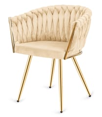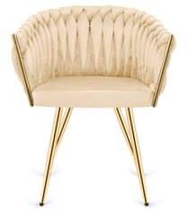 TRECCIA CREAM VELVET GOLD - Nowoczesne krzesło tapicerowane welurem w kolorze kremowym, z unikatowym splotem.