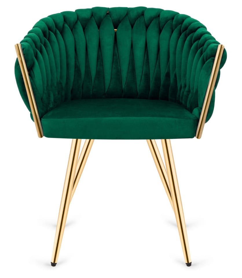 TRECCIA GREEN VELVET GOLD - Nowoczesne krzesło tapicerowane welurem w kolorze zielonym, z unikatowym splotem.