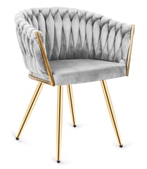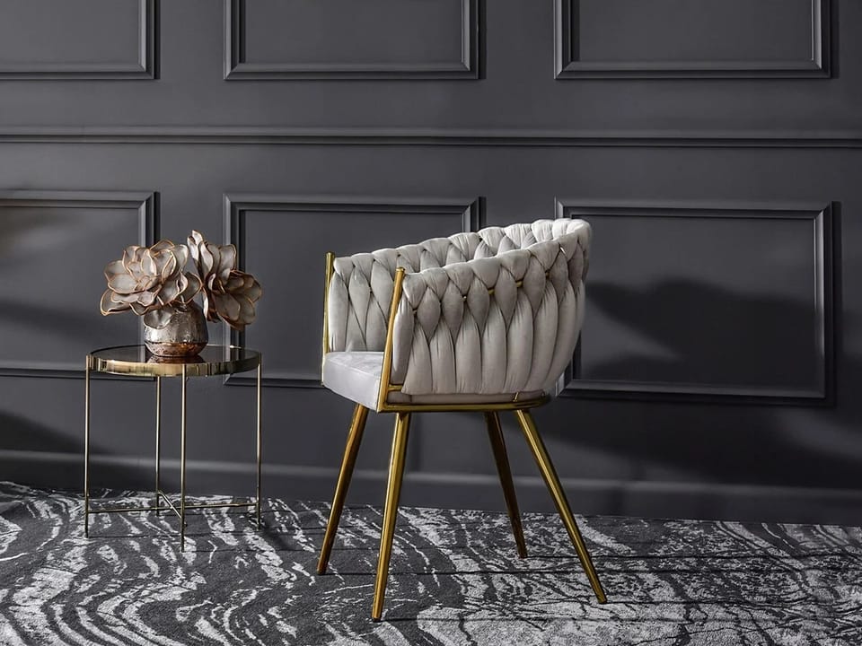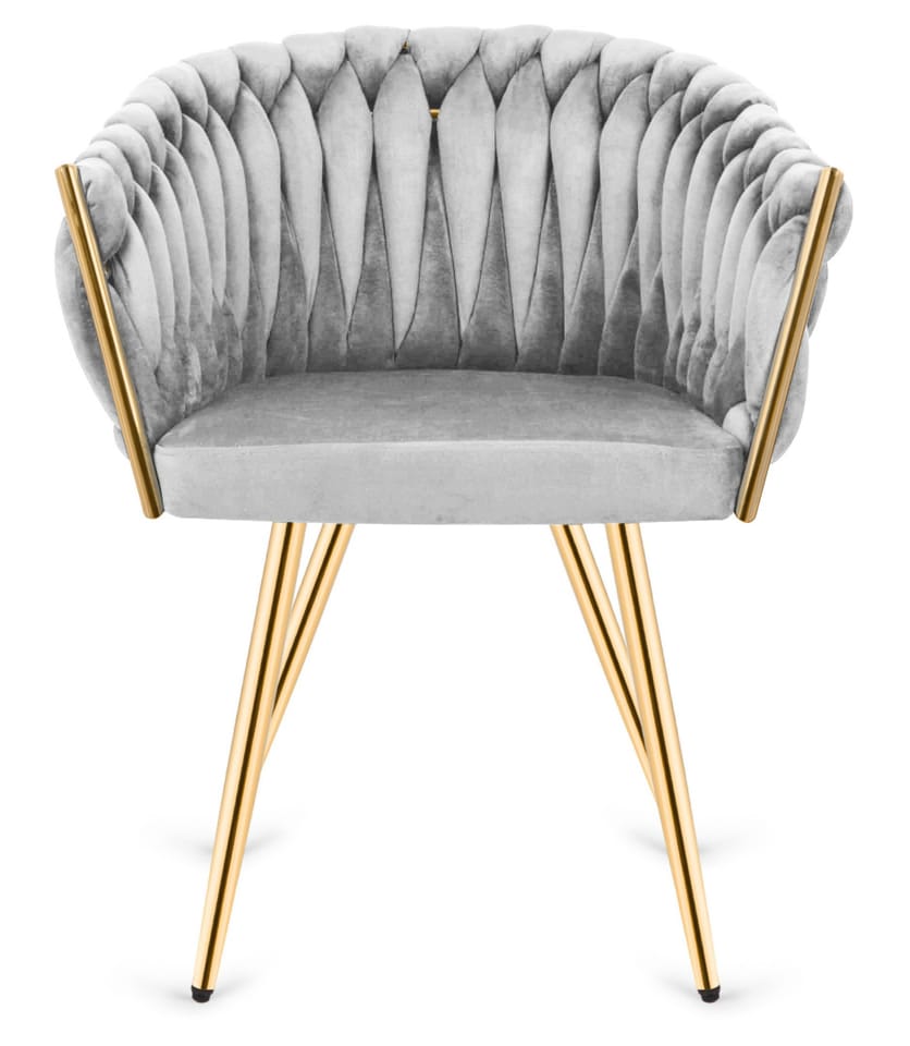 TRECCIA GREY VELVET GOLD - Nowoczesne krzesło tapicerowane welurem w kolorze szarym, z unikatowym splotem.