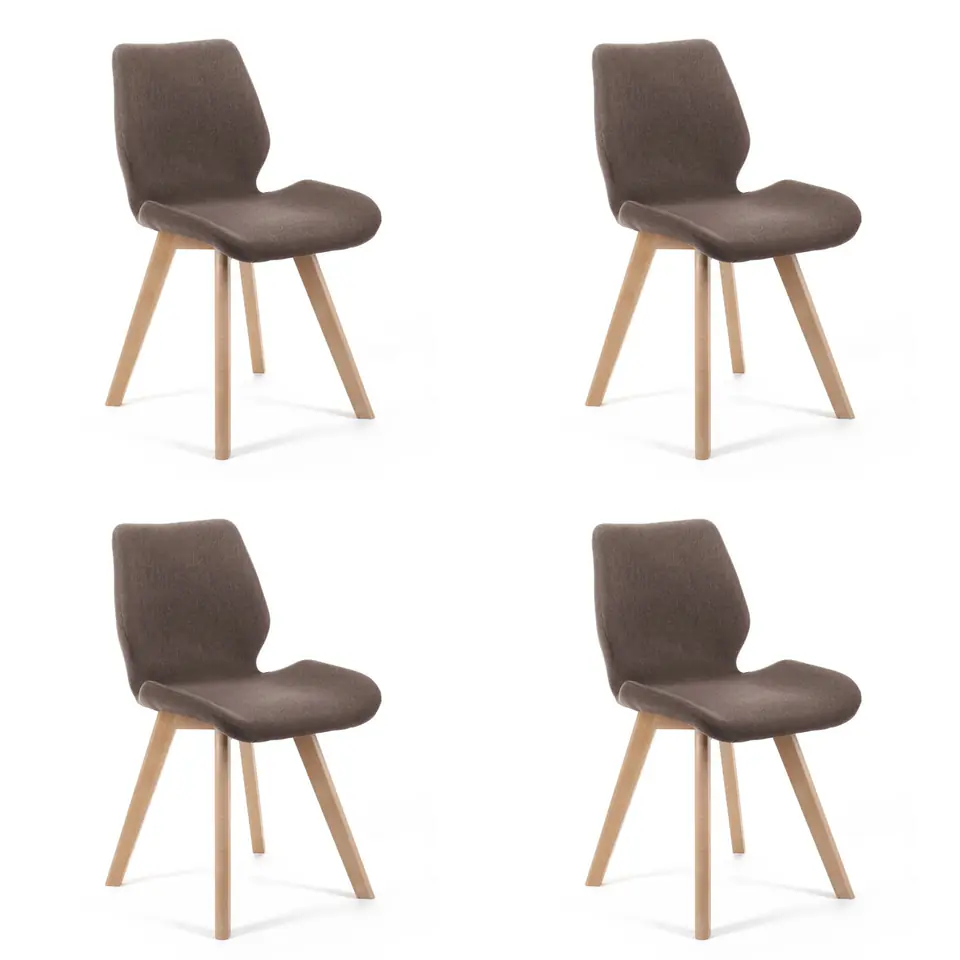 Brązowe materiałowe krzesło w stylu Skandynawskim. Krzesło dzięki obiciu materiałowemu jest wygodne i miękkie w dotyku. Drewniane nogi sprawiają, że krzesło jest eleganckie i nowoczesne jednocześnie. Krzesło SJ.0159 idealnie pasuje do gabinetu, biura, sypialni, salonu lub poczekalni. Krzesło sprzedawane jest w kompletach - 4 szt. w jednym opakowaniu.