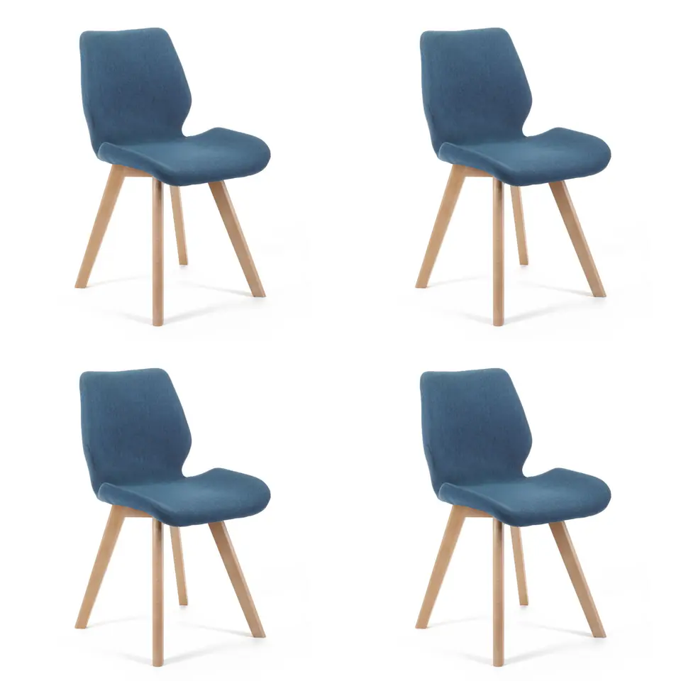Eleganckie krzesło w kolorze granatowym. Drewniane nogi nadają temu produktowi nowoczesności a zarazem stylowości. Krzesło dzięki obiciu materiałowemu jest bardzo ładne a przy tym wygodne. Nada się się do salonu, biura, sypialni, poczekalni lub recepcji. Krzesło sprzedawane jest w kompletach - 4 szt. w jednym opakowaniu.