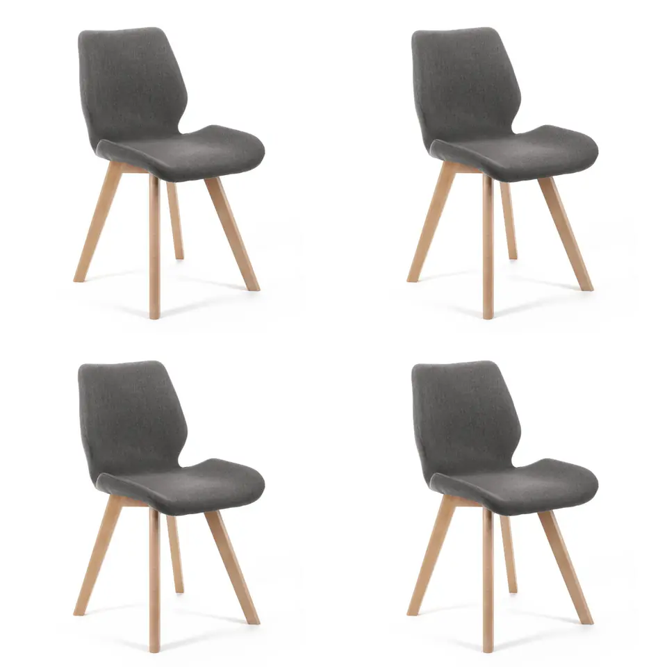 Nowoczesne krzesło w stylu skandynawskim w kolorze szaro-brązowym. Materiałowe obicie okalające siedzisko i oparcie jest bardzo wygodne oraz miłe w dotyku. Drewniane nogi nadają krzesłu dodatkowej elegancji. Dzięki temu krzesło będzie pasowało do salonu, sypialni, biura, poczekalni lub gabinetu. Krzesło sprzedawane jest w kompletach - 4 szt. w jednym opakowaniu.