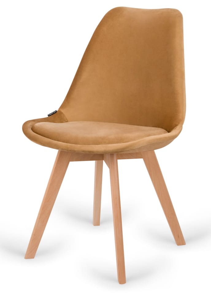 Nowoczesne krzesło skandynawskie do kuchni, jadalni, salonu w kolorze brązowym, z miękką poduszką siedziska.