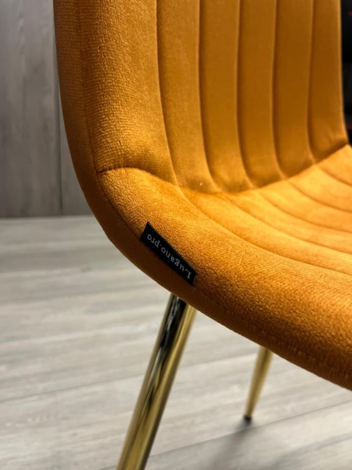 AURORA - Nowoczesne krzesło tapicerowane welurem z przeszyciami w paski, kolor miodowy.