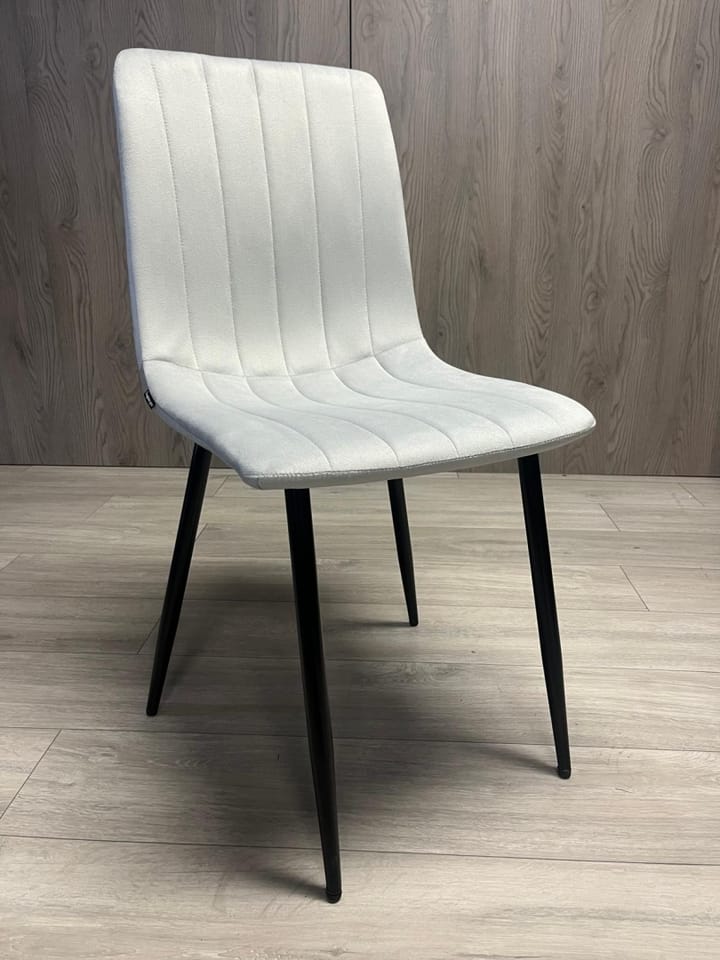 AURORA - Nowoczesne krzesło tapicerowane welurem z przeszyciami w paski, kolor jasnoszary.