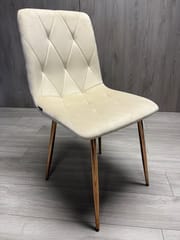 BORGO - Nowoczesne krzesło tapicerowane welurem z przeszyciami w romby, kolor beżowy z nogami w kolorze różowego złota.
