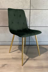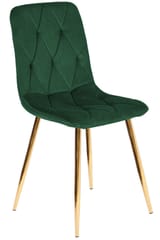 BORGO - Nowoczesne krzesło tapicerowane welurem z przeszyciami w romby, kolor ciemny zielony ze złotymi nogami.