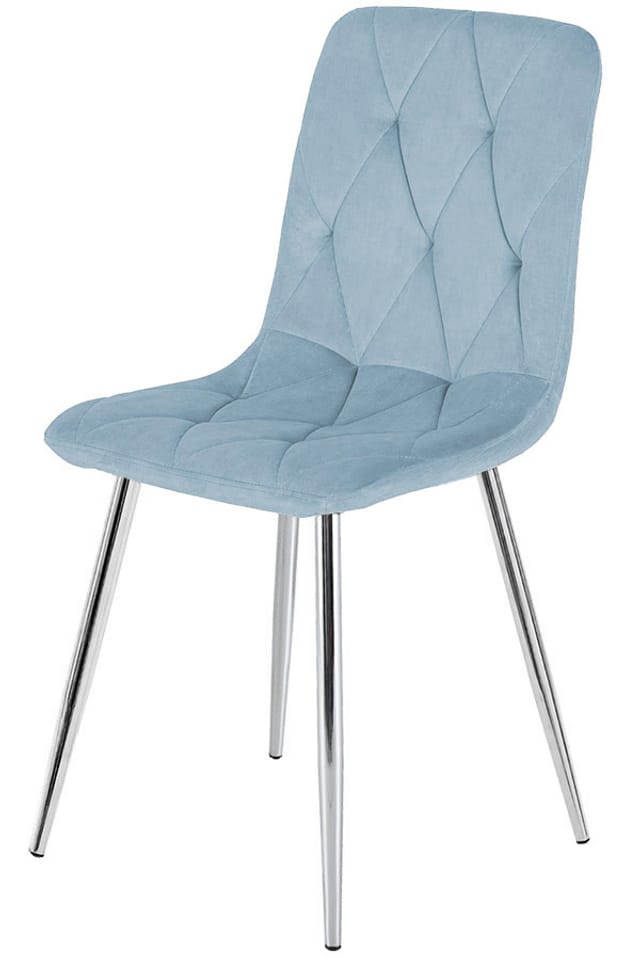 BORGO - Nowoczesne krzesło tapicerowane welurem z przeszyciami w romby, kolor jasnoniebieski z srebrnymi nogami