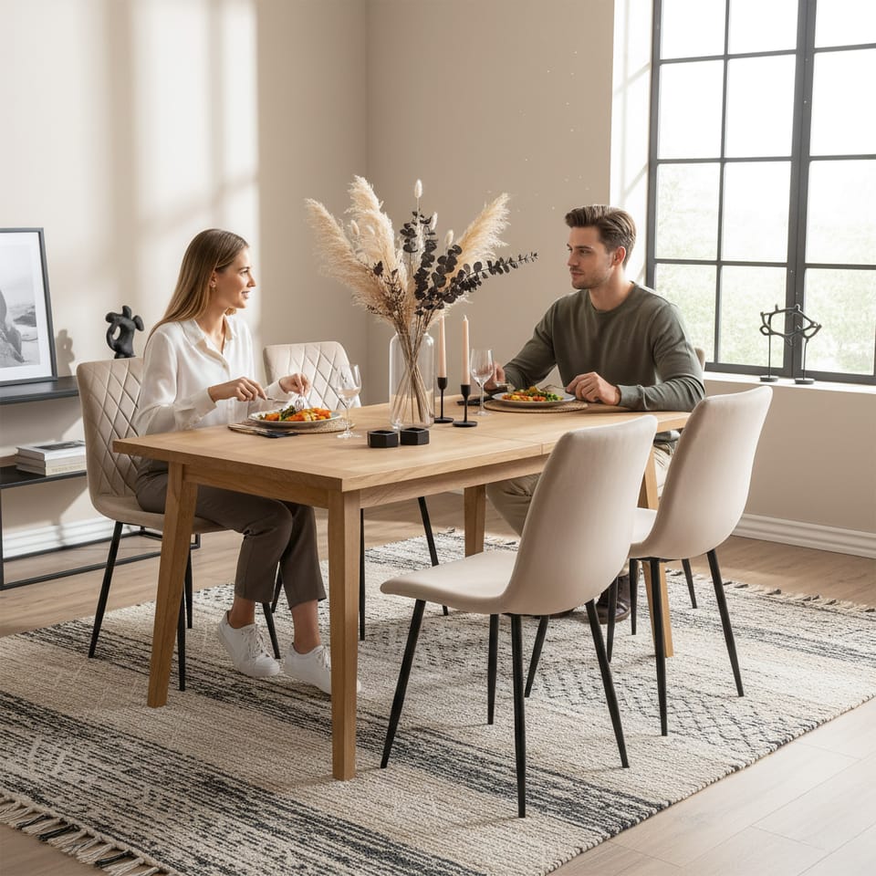 Krzesło tapicerowane Dexter Velvet beżowyPrzeznaczenie: salon, butik, biuro| Kolor tapicerki: beżowy⭐️ Welurowe siedzisko⭐️ Pionowe przeszycia⭐️ Metalowe nogi⭐️ Ochronne podkładki pod nogami⭐️Zakup bezpośrednio od producenta Krzesło Dexter to wyjątkowe krzesło, które doda blasku każdemu pomieszczeniu. Ma piękne oparcie z pikowanym, przykuwającym uwagę wzorem w karo. Wyjątkowe połączenie przyjemnego, aksamitnego materiału welurowego z metalowymi czarnymi nogami sprawi, że nikt nie przejdzie obok niego obojętnie. Krzesło bardzo wygodne, stabilne, z profilowanym oparciem. Odśwież swoje pomieszczenie już teraz! Dexter to praktyczne i komfortowe krzesło. Świetnie nada się do nowoczesnych salonów, kuchni, restauracji, barów, ekskluzywnych sklepów, salonów kosmetycznych/fryzjerskich, eleganckich biur, stoisk na targach, punktów informacyjnych. Cechy produktuObicie wykonane z miękkiej przyjemniej w dotyku aksamitnej tkaninyNogi metaloweDopuszczalna waga 120 kgWymiary produktuWysokość krzesła: 89 cmSzerokość krzesła: 45 cmGłębokość krzesła 54 cmRozstaw nóg: 45 x 40 cmWysokość siedziska: 49 cmSzerokość siedziska: 45 cmGłębokość siedziska: 40 cmGórna szerokość oparcia: 38 cmDolna szerokość oparcia: 45 cmWysokość oparcia: 43 cmGrubość nogi: 2,5 cm Informacje dodatkowePrzedstawione kolory należy traktować poglądowo - mogą odbiegać od rzeczywistych ze względu na różne ustawienia monitorów oraz proces obróbki zdjęć. Rzeczywiste wymiary mogą się różnić od podanych wyżej. Tolerancja błędów może wynosić +/- 5%.Na ostatnich grafikach zaprezentowano prawidłowy montaż nóg. Przednie nogi w krześle można dodatkowo wyregulować w zakresie poziomu. Marka:eHokeryKod produktu:065947MGKod EAN:5905523065947Kolor:beżowyWysokość całkowita: 89 cmWysokośc oparcia:43 cmGrubość nogi:2,5 cmSzerokość krzesła:45 cm