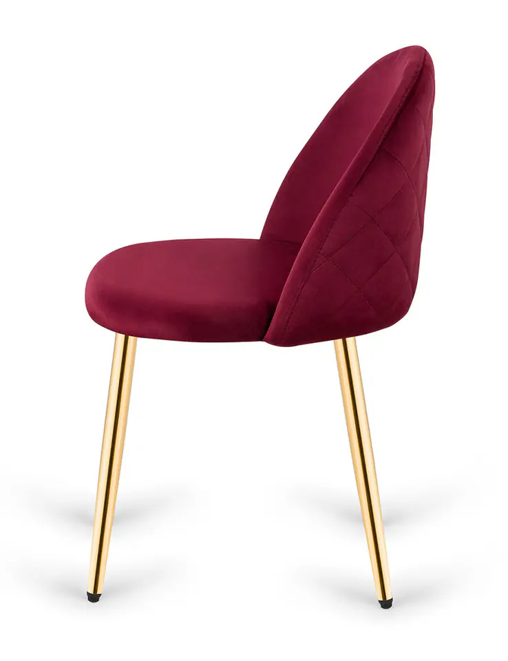 GLORIA WINE VELVET GOLD - Nowoczesne krzesło tapicerowane w kolorze bordowym, z unikatowym wzorem na oparciu i złotych nogach.