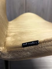 Nowoczesne krzesło tapicerowane welurową tkaniną w kolorze piaskowym ze złotymi nogami.Model MONTI, marki Lugano.