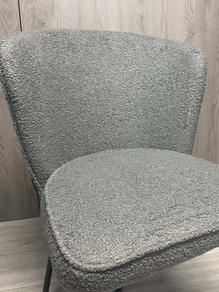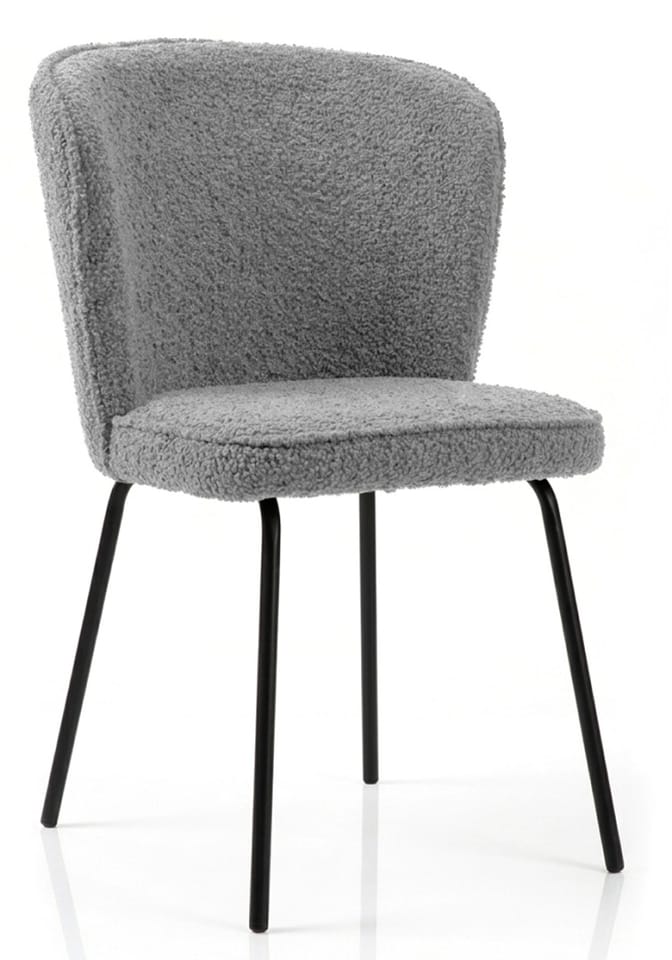 Krzesło TEDDY GREY to połączenie komfortu, nowoczesnego designu i elegancji. Dodaj swojemu wnętrzu nutę wysmakowanego stylu dzięki krzesłu TEDDY . Tapicerowane miękką i przyjemną w dotyku tkaniną typu boucle, łączy w sobie współczesny design z wyjątkową wygodą użytkowania. Obłe kształty oparcia i siedziska zapewniają ergonomiczne podparcie, a solidna, smukła podstawa z metalu gwarantuje stabilność i trwałość.
