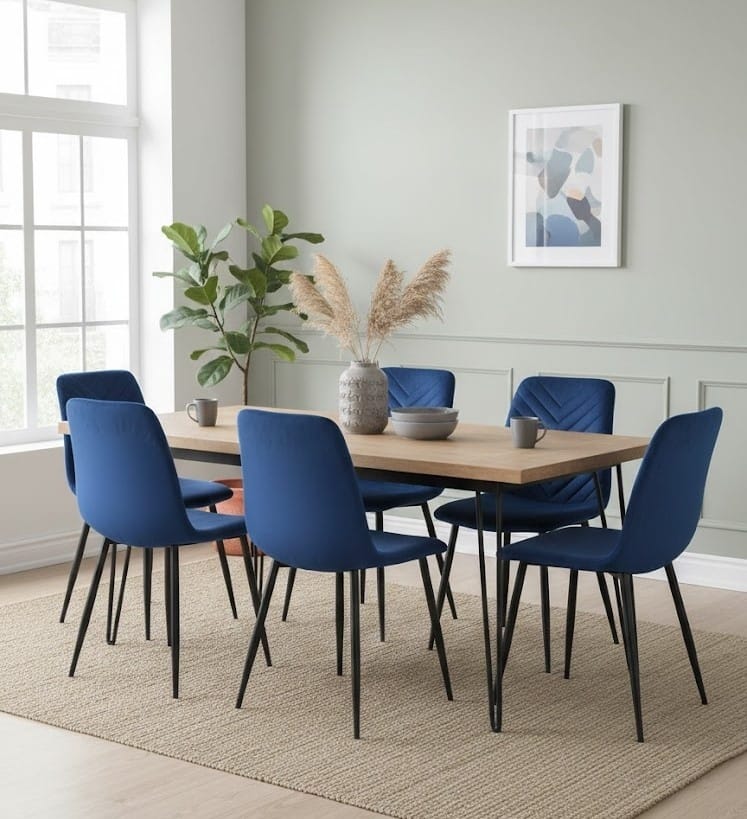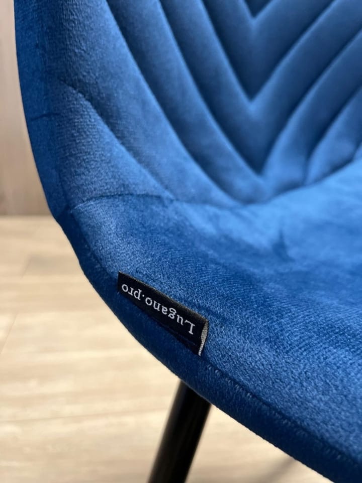 TRIO - Nowoczesne krzesło tapicerowane welurową tkaniną w kolorze niebieskim.