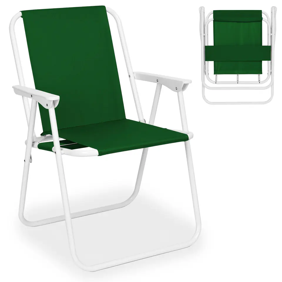 Krzesło turystyczne składane Alan zielonyModel: ALAN | Kolor: zielony⭐️ Wygodne składanie i rozkładanie⭐️ Solidne materiały⭐ Dopuszczalna waga 100 kg⭐️ Zakup bezpośrednio od producenta Wygodne i stabilne krzesełko turystyczne, idealne na działkę, plażę lub kemping. Fotel jest składany i po złożeniu zajmuje mało miejsca, dzięki czemu łatwo się go transportuje na miejsce wypoczynku. Wytrzymała konstrukcja została wykonana ze stalowych rurek malowanych proszkowo. Cechy produktułatwy w składaniu i rozkładaniulekki i mocnymalowany proszkowowygodne podłokietniki Wymiary produktuwysokość fotela – 73 cmwysokość do siedziska - 38 cmszerokość fotela – 52 cmwymiary siedziska – 43 cm x 36 cmwymiary oparcia – 45 cm x 43 cmśrednica rurek – 18mmmaksymalne obciążenie – 100kg Informacje dodatkowePrzedstawione kolory należy traktować poglądowo - mogą odbiegać od rzeczywistych ze względu na różne ustawienia monitorów oraz proces obróbki zdjęć. Rzeczywiste wymiary mogą się różnić od podanych wyżej. Tolerancja błędów może wynosić +/- 5%. Marka:eHokeryKod EAN:5905523063240Kolor:zieloneWysokość całkowita: 73 cmSzerokość całkowita:52 cmPrzeznaczenie:plaża | ogród | działka | kemping