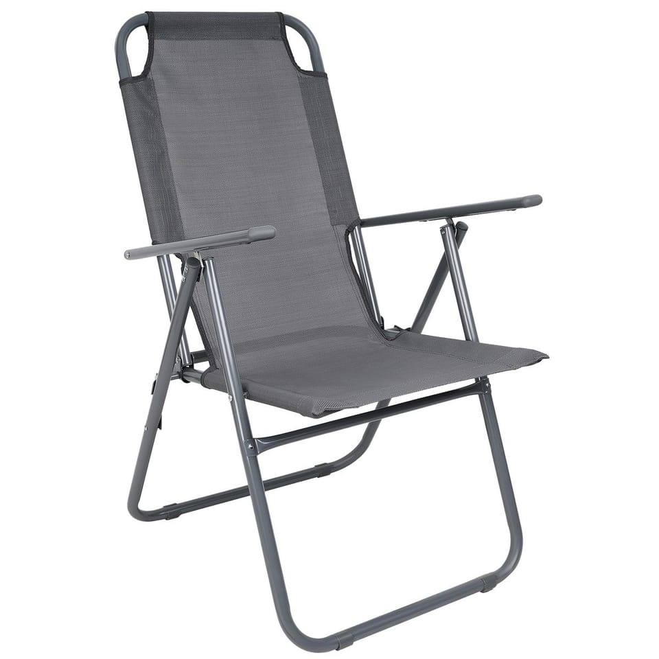 KRZESŁO TURYSTYCZNE Z PODŁOKIETNIKAMI 61x66x65-108CM SKŁADANE CIEMNO SZARE ENERO CAMP - II GATUNEK