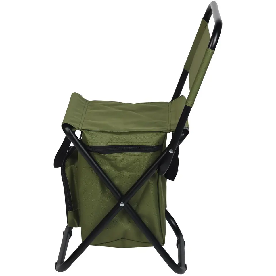 Krzesło wyposażone w pojemną TERMICZNĄ torbę z zewnętrzną kieszonką, zapinaną na zamek, pozwoli schować drobiazgi np.: zestaw wędkarski, napoje, kanapki, kremy, chusteczki czy przekąski.