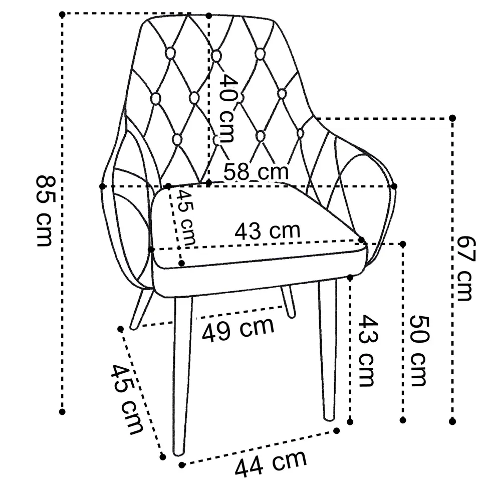 Krzesło welurowe ATLANTA VELVET ciemnozieloneModel: ATLANTA VELVET | Kolor: zielony⭐️ Welurowe, eleganckie obicie⭐️ Stabilne, metalowe nogi⭐️ Modny, pikowany wzór⭐️ Styl loftowy / glamour⭐️ Zakup bezpośrednio od producenta Tapicerowane i pikowane krzesło z ciekawym, pikowanym wzorem. Ciekawy i wyrazisty wzór, który idealne wkomponuje się do wnętrz w stylistyce loft lub glamour, nadając nieco ciepłego wyrazu. Siedzisko jest wyprofilowane i zapewnia komfortowe oparcie dla pleców. Metalowy stelaż krzesła zapewnia stabilne podparcie na każdej powierzchni. Kupując u nas, kupujesz od bezpośredniego producenta! Cechy produktuCiekawy skandynawski designKrzesło tapicerowaneMiękka tkanina z przeszyciamiMiękkie wypełnienieWytrzymała tkanina obiciowaSolidny stelażIdealne spasowanie elementówWysoki komfort i wygoda siedzeniaPrzeznaczone do salonu, kuchni lub jadalniMateriał obicia: tkanina welurowaNogi metalowe w czarnym kolorzeOchronne podkładki pod nogamiMaksymalne obciążenie 120 kg Wymiary produktuWysokość krzesła: 85 cmSzerokość krzesła: 58 cmGłębokość krzesła 60 cmRozstaw nóg: 49 x 45 x 44 cmWysokość siedziska: 50 cmWysokość do dolnej części siedziska 43 cmSzerokość siedziska: 43 cmGłębokość siedziska: 45 cmWysokość oparcia: 40 cmGrubość nogi: 3,2 cm Informacje dodatkowePrzedstawione kolory należy traktować poglądowo - mogą odbiegać od rzeczywistych ze względu na różne ustawienia monitorów oraz proces obróbki zdjęć. Rzeczywiste wymiary mogą się różnić od podanych wyżej. Tolerancja błędów może wynosić +/- 5%.Nogi w krześle można dodatkowo wyregulować w zakresie poziomu. Marka:eHokery Kod EAN produktu:5905523060553Kolor:zielonyWysokość: 85 cmSzerokość:58 cmMateriał siedziska:aksamitna tkaninaMateriał nóg:metalPrzeznaczenie:jadalnia | kuchnia | salon | biuro | restauracja | barDo samodzielnego montażu:tak