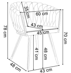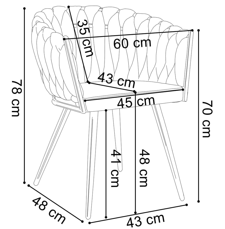 Krzesło welurowe plecione ASTON VELVET grafitoweModel: ASTON VELVET | Kolor: grafitowe⭐️ Welurowe, eleganckie obicie⭐️ Stabilne, metalowe nogi⭐️ Oparcie z welurowych warkoczy⭐️ Styl loftowy / glamour⭐️ Zakup bezpośrednio od producenta Tapicerowane i pikowane krzesło z ciekawym, plecionym wzorem. Ciekawy i wyrazisty wzór, który idealne wkomponuje się do wnętrz w stylistyce loft lub glamour, nadając nieco ciepłego wyrazu. Siedzisko jest wyprofilowane i zapewnia komfortowe oparcie dla pleców. Metalowy stelaż krzesła wraz z nogami zapewnia stabilne podparcie na każdej powierzchni. Kupując u nas, kupujesz od bezpośredniego producenta! Cechy produktu✅Tapicerka aksamitna✅Stelaż metalowy ✅Nogi czarne- najnowszy trend wnętrzarski✅Podkładki pod nogami✅Dopuszczalna waga 120 kg✅Unikatowy, elegancki splot✅Najmodniejsza kolorystyka ✏️ Wymiary:Wysokość krzesła: 78 cmSzerokość krzesła: 60 cmGłębokość krzesła: 53 cmRozstaw nóg: 48 x 43 cmWysokość siedziska: 48 cmSzerokość siedziska: 45 cmGłębokość siedziska: 43 cmWysokość oparcia: 35 cmGrubość nogi: 31 mm Informacje dodatkowePrzedstawione kolory należy traktować poglądowo - mogą odbiegać od rzeczywistych ze względu na różne ustawienia monitorów oraz proces obróbki zdjęć. Rzeczywiste wymiary mogą się różnić od podanych wyżej. Tolerancja błędów może wynosić +/- 5%.Nogi w krześle można dodatkowo wyregulować w zakresie poziomu. Marka:eHokeryKod produktu:5905523062717Kolor:grafitowyWysokość: 78 cmSzerokość:60 cmMateriał siedziska:aksamitna tkaninaMateriał nóg:metalPrzeznaczenie:jadalnia | kuchnia | salon | biuro | restauracja | barDo samodzielnego montażu:tak
