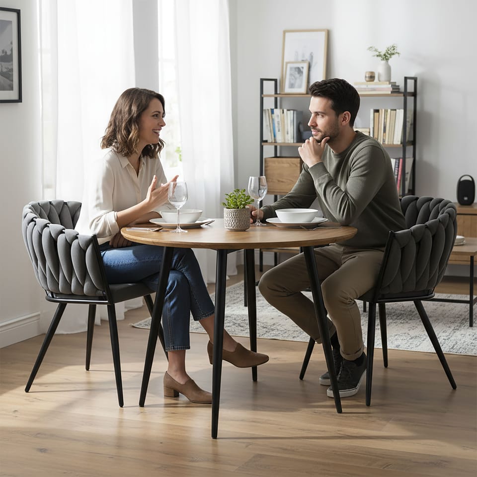 Krzesło welurowe plecione ASTON VELVET grafitoweModel: ASTON VELVET | Kolor: grafitowe⭐️ Welurowe, eleganckie obicie⭐️ Stabilne, metalowe nogi⭐️ Oparcie z welurowych warkoczy⭐️ Styl loftowy / glamour⭐️ Zakup bezpośrednio od producenta Tapicerowane i pikowane krzesło z ciekawym, plecionym wzorem. Ciekawy i wyrazisty wzór, który idealne wkomponuje się do wnętrz w stylistyce loft lub glamour, nadając nieco ciepłego wyrazu. Siedzisko jest wyprofilowane i zapewnia komfortowe oparcie dla pleców. Metalowy stelaż krzesła wraz z nogami zapewnia stabilne podparcie na każdej powierzchni. Kupując u nas, kupujesz od bezpośredniego producenta! Cechy produktu✅Tapicerka aksamitna✅Stelaż metalowy ✅Nogi czarne- najnowszy trend wnętrzarski✅Podkładki pod nogami✅Dopuszczalna waga 120 kg✅Unikatowy, elegancki splot✅Najmodniejsza kolorystyka Wymiary produktuWysokość krzesła: 85 cmSzerokość krzesła: 59 cmGłębokość krzesła 61 cmRozstaw nóg: 43,5 x 47 cmWysokość do dolnej części siedziska: 41 cmWysokość do górnej części siedziska: 49 cmSzerokość siedziska: 41 cmGłębokość siedziska: 46 cmWysokość oparcia: 41 cmGrubość nogi: 32 mm Informacje dodatkowePrzedstawione kolory należy traktować poglądowo - mogą odbiegać od rzeczywistych ze względu na różne ustawienia monitorów oraz proces obróbki zdjęć. Rzeczywiste wymiary mogą się różnić od podanych wyżej. Tolerancja błędów może wynosić +/- 5%.Nogi w krześle można dodatkowo wyregulować w zakresie poziomu. Marka:eHokeryKod produktu:5905523062717Kolor:grafitowyWysokość: 78 cmSzerokość:60 cmMateriał siedziska:aksamitna tkaninaMateriał nóg:metalPrzeznaczenie:jadalnia | kuchnia | salon | biuro | restauracja | barDo samodzielnego montażu:tak