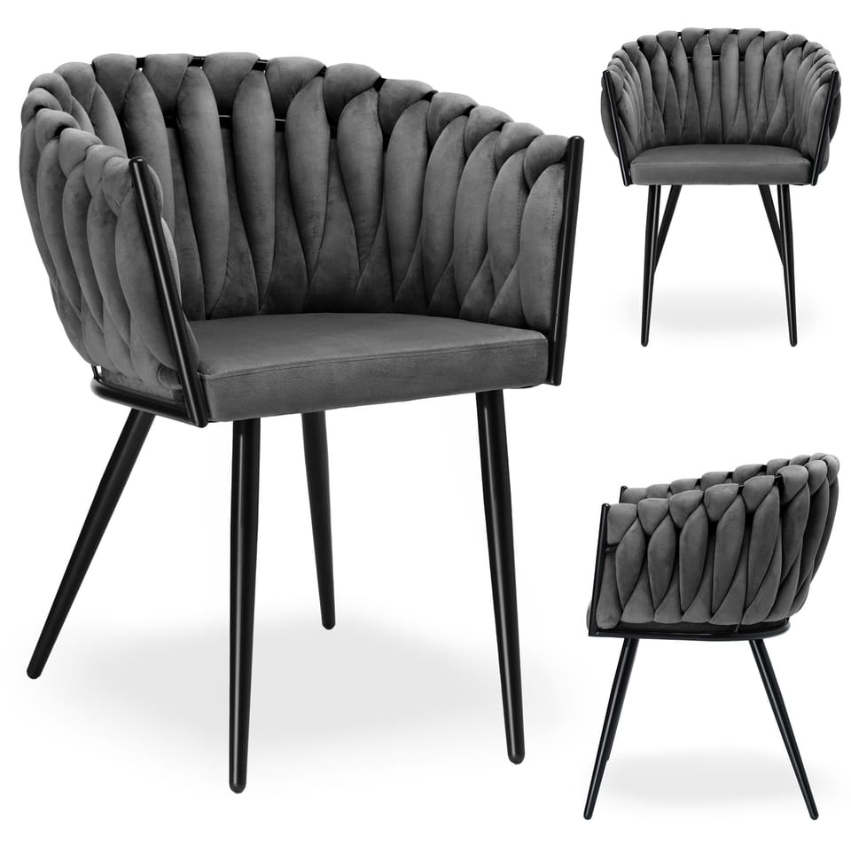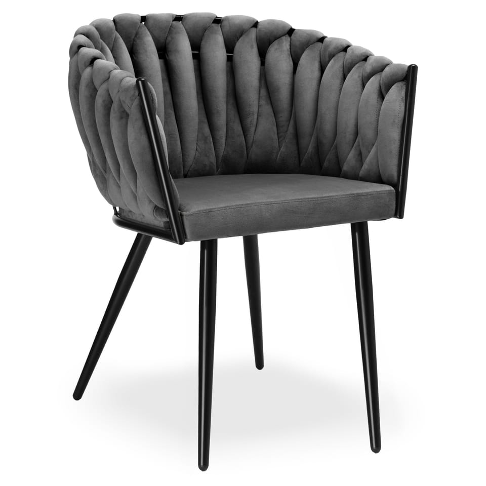 Krzesło welurowe plecione ASTON VELVET grafitowe
