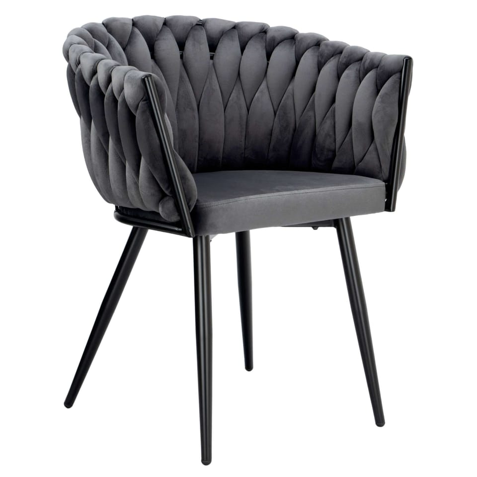 Krzesło welurowe plecione COFTON Black VELVET grafitowy