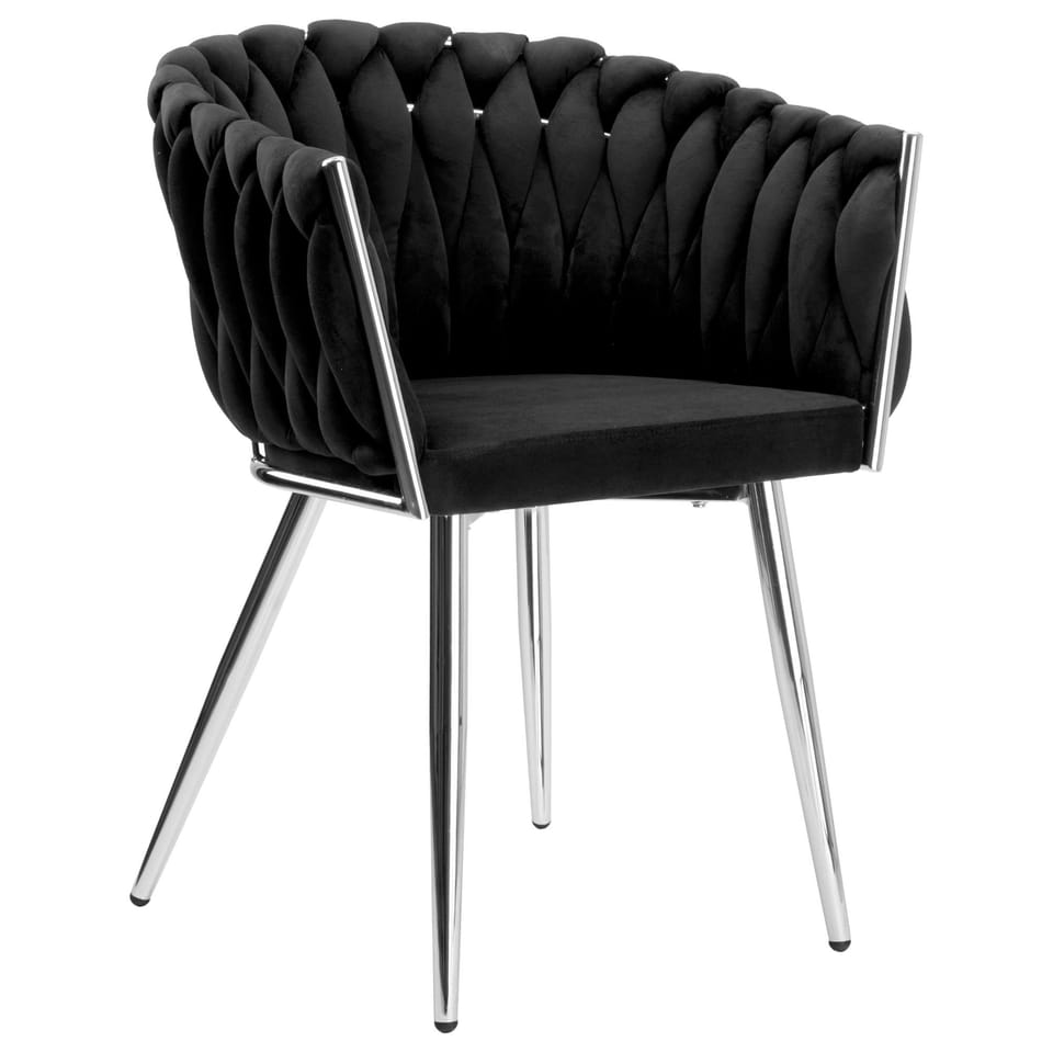 Krzesło welurowe plecione COFTON chrom VELVET czarny