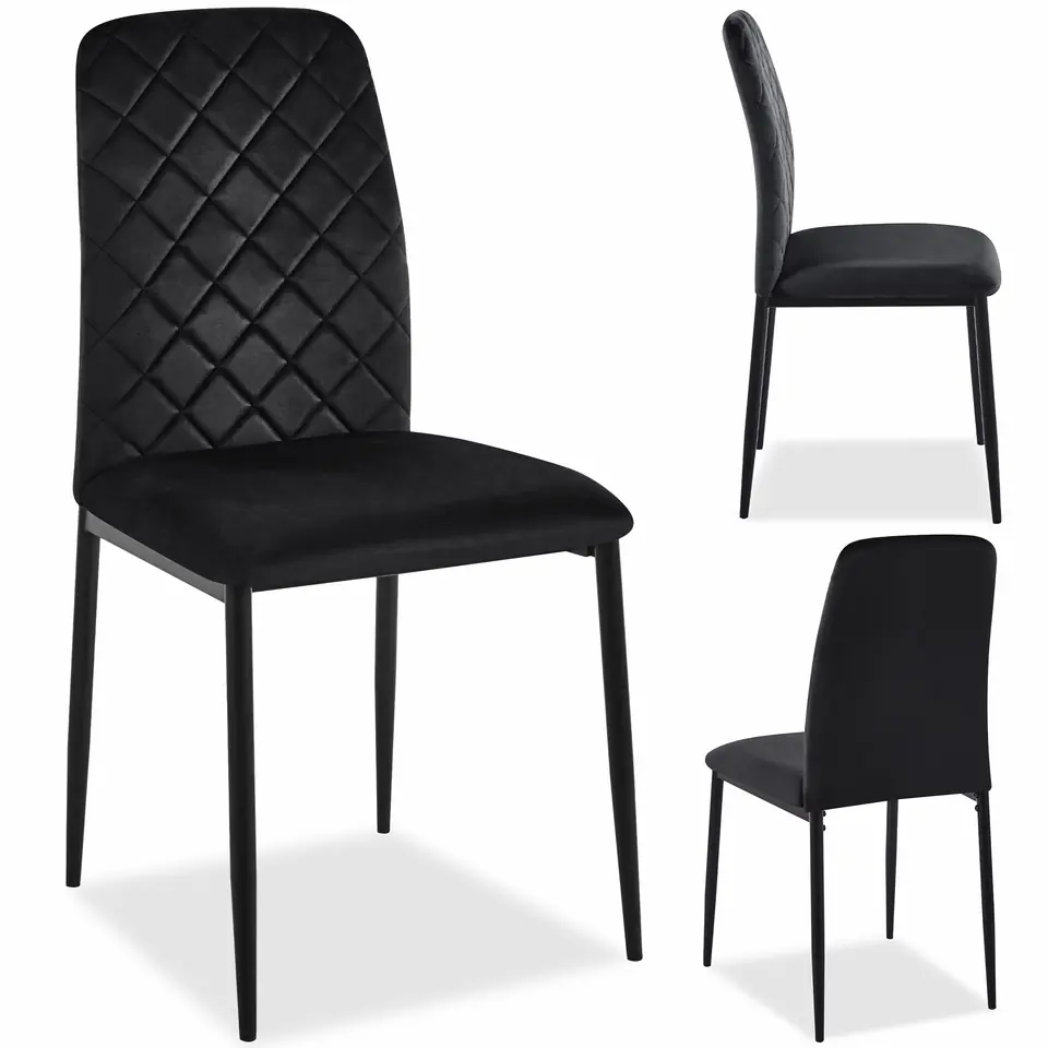 Krzesło welurowe tapicerowane MAVERIK Velvet czarnePrzeznaczenie: salon, butik, garderoba | Kolory: czarny⭐ Tapicerowane, welurowe obicie⭐ Geometryczne pikowane przeszycia⭐ Metalowe nogi z ochronnymi podkładkami⭐ Dopuszczalna waga 120 kg ⭐ Zakup od producentaKrzesło Maverik to połączenie nowoczesnego designu z wyjątkowym komfortem. Dzięki aksamitnej tkaninie welurowej i eleganckim, matowym metalowym nogom, wnosi do każdego wnętrza nutę luksusu. Idealne zarówno do kuchni, jadalni, salonu, jak i biura. Krzesło Maverik zapewnia nie tylko stylowy wygląd, ale również wygodę użytkowania, dzięki czemu każda chwila spędzona na nim staje się przyjemnością. Kupując krzesło Maverik, zyskujesz nie tylko estetykę, ale także funkcjonalność, co sprawia, że doskonale wpisuje się w potrzeby nowoczesnych wnętrz. SpecyfikacjaObicie wykonane z miękkiej przyjemniej w dotyku aksamitnej tkaniny welurowejNogi metalowe z ochronnymi podkładkami w kolorze czarny matOdcień materiału zmienia się wraz z ułożeniem włosia np. jak w skórze zamszowej.Dopuszczalna waga 120 kg WymiaryWysokość krzesła: 90 cmSzerokość krzesła: 46 cmGłębokość krzesła: 50 cmRozstaw nóg: 47 x 44 cmWysokość siedziska: 46 cmWysokość do dolnej części siedziska: 40 cmSzerokość siedziska: 46 cmGłębokość siedziska: 39 cmSzerokość oparcia: 38 cmWysokość oparcia: 46 cmGrubość nogi: 2,5 cm Informacje dodatkowePrzedstawione kolory należy traktować poglądowo - mogą odbiegać od rzeczywistych ze względu na różne ustawienia monitorów oraz proces obróbki zdjęć. Rzeczywiste wymiary mogą się różnić od podanych wyżej. Tolerancja błędów może wynosić +/- 5%.Marka:eHokeryKod produktu:060942MGKod EAN:5905523060942Kolor:czarnyWysokość: 90 cmWysokośc oparcia:46 cmGrubość nogi:2,5 cmSzerokość krzesła:46 cm