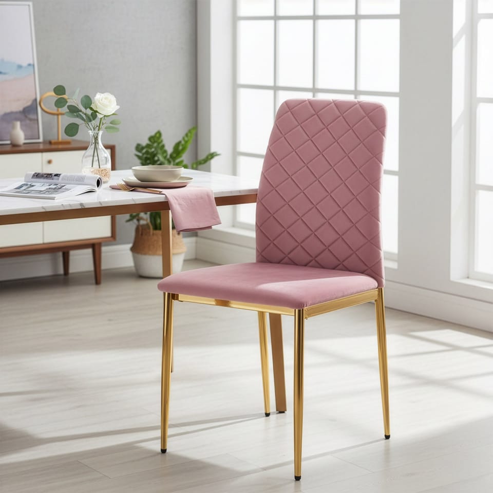 Krzesło welurowe tapicerowane MAVERIK Velvet gold różowe