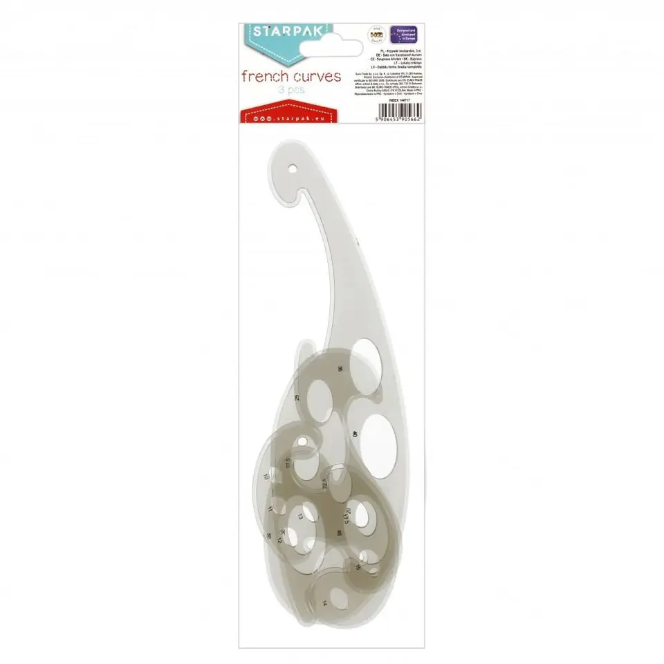 Krzywiki kreślarskie z kolekcji Starpak dedykowanej dla szkoły i biura. W zestawie znajdują się 3 szablony. Idealne podczas wykonywania rysunków technicznych do wykreślenia linii krzywych, które są niemożliwe do narysowania przy użyciu cyrkla. Użycie krzywika pozwala na wyprowadzenie dowolnej linii krzywej o zmiennym przebiegu, która nie jest odcinkiem łuku okręgu. Zapoznaj się również z innymi produktami Starpak Krzywiki pakowane w folię z zawieszką. Przeznaczone dla dzieci w wieku: 3 . Wymiary opakowania wys.x szer. x gł. cm : 37x11x0,5.
