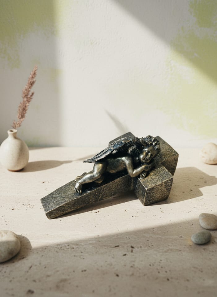 Krzyż figura ze śpiącym aniołem szary13x22,5x10,5cm srebrny