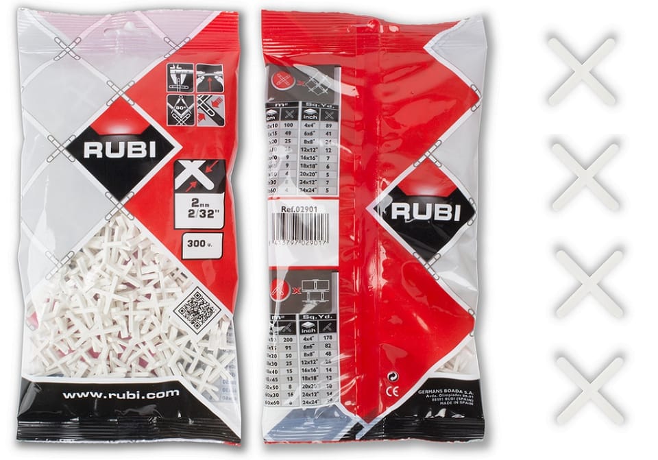 Krzyżyki marki RUBI wyróżniają się pod względem powtarzalności partii, dokładności wymiarowej oraz brakiem zadziorów i jakichkolwiek skaz produkcyjnych. Dzięki tym szczególnym właściwościom marka RUBI cieszy się zaufaniem płytkarzy, którzy za pomocą jej krzyżyków, tetek i klinów są w stanie osiągnąć perfekcyjne wykończenie z najwyższą dokładnością.