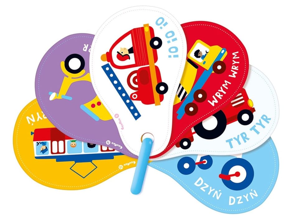 Książeczka obrazkowa z pojazdami i opisującymi je wyrażeniami dźwiękonaśladowczymi zachęci maluchy do nauki pierwszych słów. Rozpoznawanie i naśladowanie dźwięków to prosta i dająca mnóstwo radości zabawa, dzięki której dzieci rozwijają słuch oraz mowę i ćwiczą umiejętność zapamiętywania. Prosta forma i ilustracje dostosowane do wieku zachęcają maluchy do powtarzania dźwięków przez trenowanie języka i buzi. To wyjątkowo przyjemny sposób na wspólne poznawania świata.