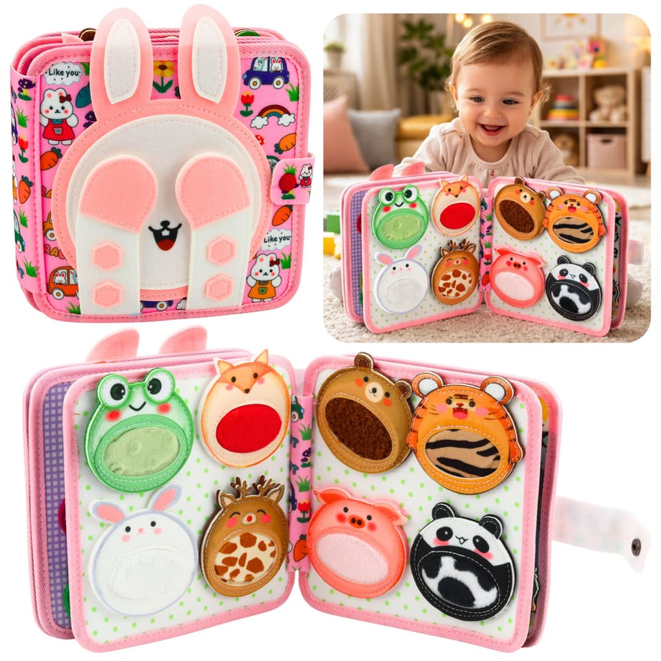 Książeczka sensoryczna filcowa z motywem króliczka to kreatywna zabawka edukacyjna dla najmłodszych dzieci, która wspiera rozwój zmysłów, zdolności manualnych oraz wyobraźni. Kolorowa książeczka została zaprojektowana tak, aby poprzez zabawę pomagać dziecku poznawać różne kształty, kolory oraz zwierzęta. Dzięki różnorodnym elementom sensorycznym dziecko może odkrywać nowe aktywności, ćwiczyć sprawność dłoni oraz rozwijać koncentrację.