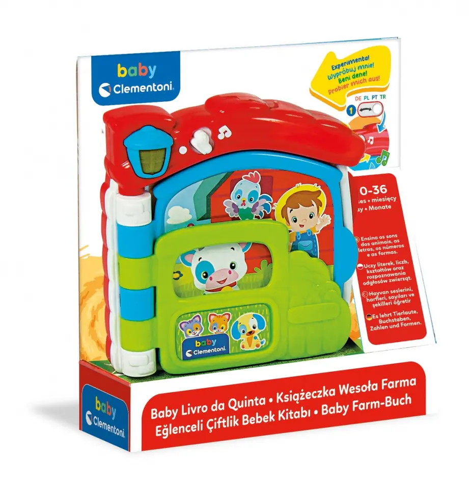 - Przewracając strony i naciskając podświetlany przycisk na dachu farmy dziecko poznaje zwierzęta i ich odgłosy, odkrywa pierwsze litery, cyfry i kształty.