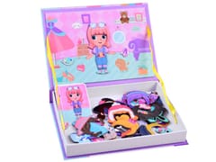 Magnetyczna układanka Moda dla dziewczyn, to idealne zajęcie dla każdej przyszłej kreatorki mody, stylu, pokazów mody. Urocze pudełko w kształcie książki z modelką w głównej roli. Wewnątrz opakowania znajduje się na głównej stronie modelka, którą należy ubrać w dowolną kreacje. Można oczywiście wybrać wersję stroju, którą sugeruje karta ze wzorem, ale można też podążyć za własnym stylem, wyczuciem, fantazją.