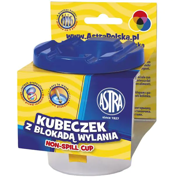 Kubek niekapek doskonaly do pracy zarówno w domu jak i w szkole, posiada blokade wylania co zabezpiecza miejsce prac plastycznych przed przypadkowym zalaniem.