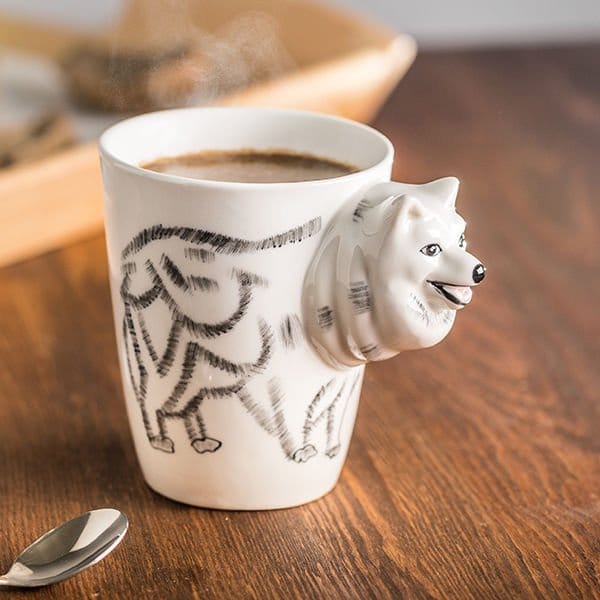 Wysokiej jakości, ręcznie malowany kubek z trójwymiarowym psem, którego głowa służy za uszko, zaś korpus namalowany jest na kubku . Z pewnością przypadnie do gustu miłośnikowi czy miłośniczce tych miłych zwierzaków. Idealny pomysł na prezent dla wielbiciela psów i ogólnie zwierząt.