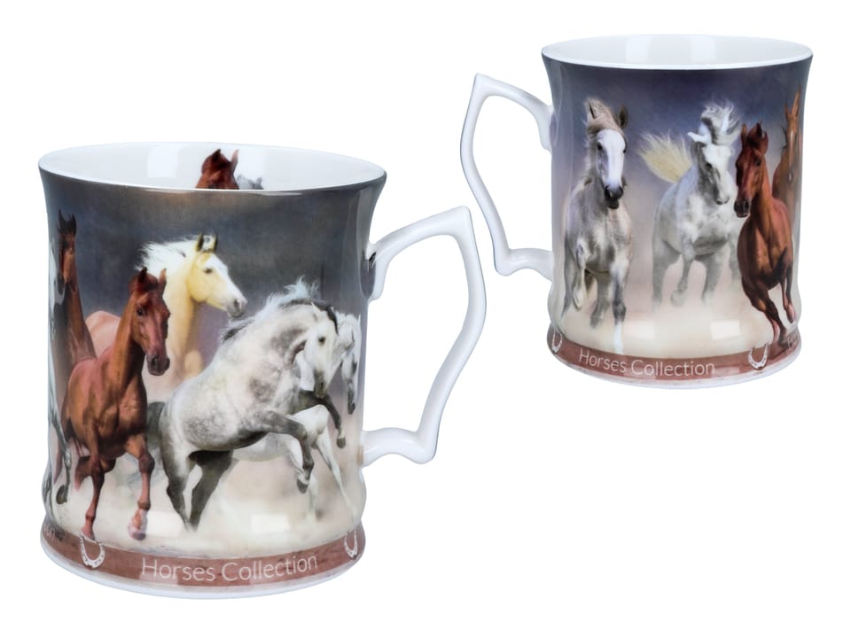 Konie w galopie to symbol wolności. Zmierzwione grzywy przywołują na myśl wiatr, przestrzeń i dziką naturę ? tę nieokiełznaną energię, którą każdy z nas nosi w sobie. Te wszystkie wrażenia zamknęliśmy w dekoracji kubka z porcelany bone china.