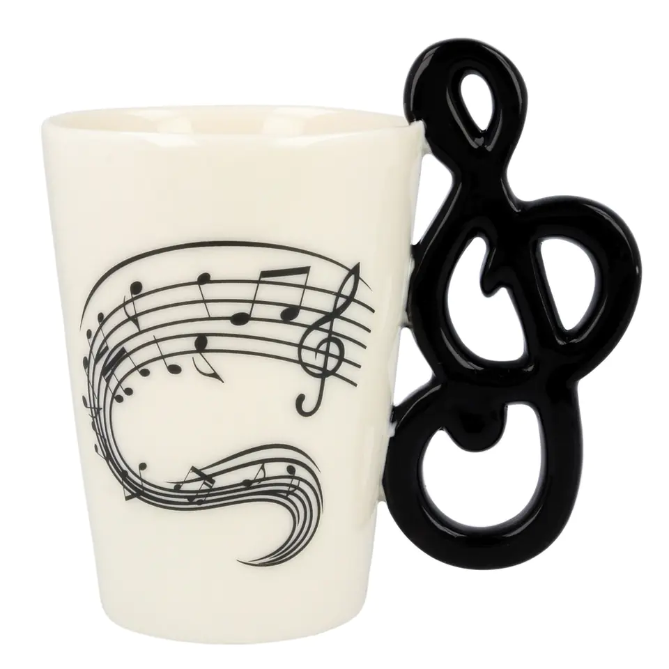 Uchwyt w kształcie klucza wiolinowego Ten kubek to idealny prezent dla każdego miłośnika muzyki. Jego unikalny design łączy elegancję i pasję - biała porcelana z motywem nutowym przyciąga wzrok, a uchwyt w kształcie czarnego klucza wiolinowego nadaje mu artystycznego charakteru. To nie tylko praktyczny przedmiot codziennego użytku, ale także piękny symbol miłości do dźwięków i harmonii. Idealny na poranną kawę, herbatę czy chwilę relaksu przy ulubionej muzyce. Muzyczny prezent w eleganckim pudełku Kubek muzyka to też idealny sposób, aby pokazać światu, jak ważną rolę w Twoim życiu odgrywa muzyka. Doskonale sprawdza się podczas relaksującej przerwy na coś ciepłego. Kiedy nie masz możliwości zagrać na ulubionym instrumencie, możesz złapać za jego designerskie ucho.