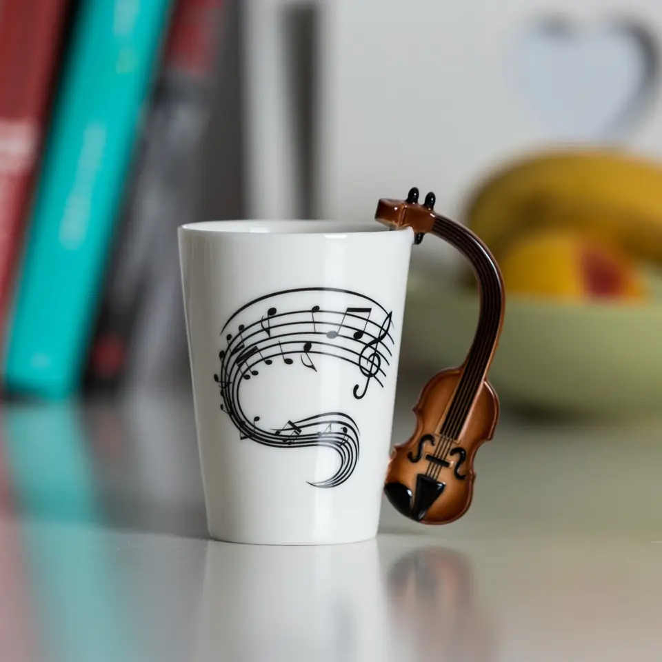 Uchwyt w kształcie muzycznego instrumentu Muzycy należą do tych osób, na których trudno zrobić wrażenie, bo mało co pobudza ich tak mocno jak ich miłość do dźwięku. To właśnie z myślą o nich oraz o wszystkich pozostałych miłośnikach muzyki prezentujemy kubek z uchwytem w kształcie instrumentu muzycznego. Jeśli szukasz unikalnego prezentu dla takiej osoby, kubek muzyka to doskonałe rozwiązanie. Muzyczny prezent w eleganckim pudełku Kubek muzyka to też idealny sposób, aby pokazać światu, jak ważną rolę w Twoim życiu odgrywa muzyka. Doskonale sprawdza się podczas relaksującej przerwy na coś ciepłego. Kiedy nie masz możliwości zagrać na ulubionym instrumencie, możesz złapać za jego designerskie ucho.
