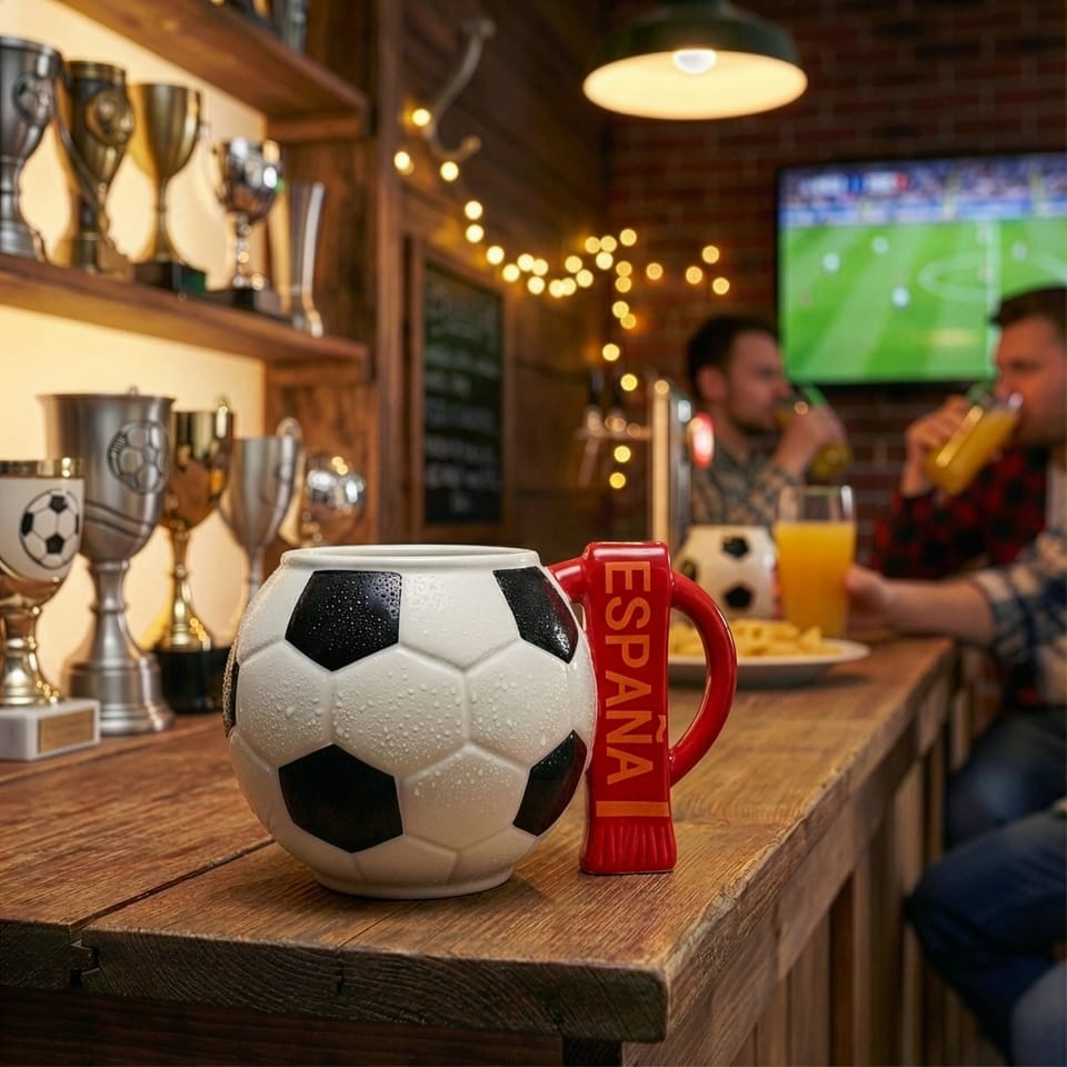 Pokaż, komu kibicujesz! Duży, efektowny kubek w kształcie piłki nożnej, z uchwytem stylizowanym na kibicowski szalik z nazwą kraju, to idealny towarzysz każdego fana futbolu. Sprawdzi się podczas emocjonujących meczów, porannych rytuałów z kawą i codziennych chwil z ulubionym napojem.Dzięki imponującej pojemności 700 ml możesz cieszyć się dłuższymi przerwami na gorącą kawę, herbatę czy zimny napój.To świetny pomysł na prezent dla każdego miłośnika piłki nożnej. Oryginalny design, solidne wykonanie i pełen sportowej energii charakter sprawiają, że ten kubek to prawdziwy must-have każdego kibica. Prawdziwy kibic stawia na piłkę! Silikonowa podkładka w kształcie piłki to drobny, ale mocny akcent, który łączy pokolenia fanów futbolu - od młodych piłkarzy po dorosłych kibiców. Chroni biurko, dodaje charakteru każdemu miejscu i subtelnie przypomina, że pasja do piłki jest obecna nie tylko na boisku, ale także podczas porannej kawy czy wieczornego meczu. To praktyczny gadżet, który buduje piłkarską tożsamość i daje radość każdemu, kto po prostu kocha futbol. Postaw na piłkę! Nieodłączny towarzysz każdego meczu Gdy inni zakładają szaliki, Ty chwytasz swój kubek kibica. Jego solidna, 700 ml pojemność sprawia, że bez trudu odnajdzie się także w roli „meczowego kufla”, towarzysząc Ci od pierwszego gwizdka aż po ostatnie emocje. Zabierz go do strefy kibica, postaw na stole podczas transmisji – niech będzie Twoją flagą, okrzykiem wsparcia i talizmanem. Bo każdy detal ma znaczenie, gdy gra Twoja drużyna!Ten duży kubek w kształcie piłki nożnej to idealny prezent dla każdego fana futbolu, który żyje meczowymi emocjami i prawdziwym kibicowaniem. Prezent dla młodego piłkarza Jeśli Twój syn żyje futbolem od rana do wieczora, a każdy wolny moment spędza z piłką przy nodze, ten kubek będzie dla niego czymś więcej niż drobnym upominkiem. Przypomni mu o pierwszych krokach na boisku, doda odwagi przed treningami i podkręci marzenia o wielkich stadionach. To prezent, który mówi: „Wierzę w Ciebie — graj dalej”.
