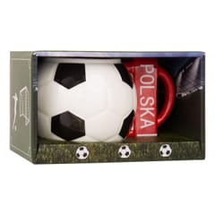 Pokaż, komu kibicujesz! Duży, efektowny kubek w kształcie piłki nożnej, z uchwytem stylizowanym na kibicowski szalik z nazwą kraju, to idealny towarzysz każdego fana futbolu. Sprawdzi się podczas emocjonujących meczów, porannych rytuałów z kawą i codziennych chwil z ulubionym napojem.Dzięki imponującej pojemności 700 ml możesz cieszyć się dłuższymi przerwami na gorącą kawę, herbatę czy zimny napój.To świetny pomysł na prezent dla każdego miłośnika piłki nożnej. Oryginalny design, solidne wykonanie i pełen sportowej energii charakter sprawiają, że ten kubek to prawdziwy must-have każdego kibica. Prawdziwy kibic stawia na piłkę! Silikonowa podkładka w kształcie piłki to drobny, ale mocny akcent, który łączy pokolenia fanów futbolu - od młodych piłkarzy po dorosłych kibiców. Chroni biurko, dodaje charakteru każdemu miejscu i subtelnie przypomina, że pasja do piłki jest obecna nie tylko na boisku, ale także podczas porannej kawy czy wieczornego meczu. To praktyczny gadżet, który buduje piłkarską tożsamość i daje radość każdemu, kto po prostu kocha futbol. Postaw na piłkę! Dla wojowników boiska Każdy młody piłkarz nosi w sobie marzenia o wielkich stadionach i grze z orłem na piersi. A gdy akurat nie może być na murawie – niech ten kubek przypomina mu, że piłka to nie tylko sport, lecz sposób na życie. To źródło siły, inspiracji i codziennej motywacji.Niezależnie od tego, czy dopiero zaczynasz swoją piłkarską przygodę, czy odliczasz dni do kolejnego meczu - pokaż, że należysz do drużyny! Prezent dla młodego piłkarza Jeśli Twój syn żyje futbolem od rana do wieczora, a każdy wolny moment spędza z piłką przy nodze, ten kubek będzie dla niego czymś więcej niż drobnym upominkiem. Przypomni mu o pierwszych krokach na boisku, doda odwagi przed treningami i podkręci marzenia o wielkich stadionach. To prezent, który mówi: „Wierzę w Ciebie — graj dalej”. Nieodłączny towarzysz każdego meczu Gdy inni zakładają szaliki, Ty chwytasz swój kubek kibica. Jego solidna, 700 ml pojemność sprawia, że bez trudu odnajdzie się także w roli „meczowego kufla”, towarzysząc Ci od pierwszego gwizdka aż po ostatnie emocje. Zabierz go do strefy kibica, postaw na stole podczas transmisji – niech będzie Twoją flagą, okrzykiem wsparcia i talizmanem. Bo każdy szczegół ma znaczenie, gdy gra Polska!Ten duży kubek w kształcie piłki nożnej to idealny prezent dla kibica, który w sercu nosi biało-czerwone barwy.