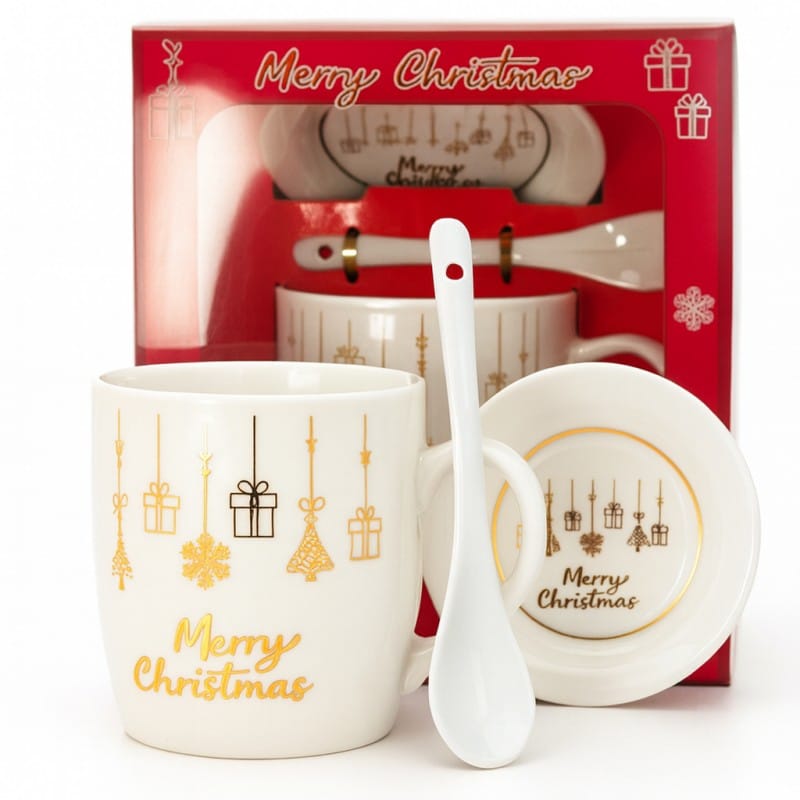 KUBEK CERAMICZNY z motywem świątecznymZestaw z pokrywką i łyżeczką Idealny gadżet dla każdego miłośnika kawy czy herbaty. Specyfikacja:Materiał: ceramika / stal nierdzewnaKolor: biały, złotyPojemność: max 350 mlWymiary: 8,5 cm x 9 cmŚrednica pokrywki: 9,5 cmDługość łyżeczki: 13 cm Czyszczenie:Produkt przeznaczony do ręcznego mycia Wymiary opakowania:18cm x 16,5cm x 10 cm Waga:363 g netto463 g brutto Zestaw zapakowany w ozdobne kartonowe pudełko Poczuj świąteczny klimat!